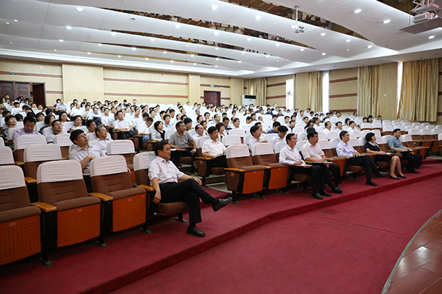 本网讯(文/刘洁图/丁毅民)9月25日上午,我校在第一报告厅举办“三严三实”专题教育第二个专题辅导报告会,中央党校马克思主义理论教研部副主任、博士生导师牛先锋教授应邀来校作了题为《践行“三严三实”做忠诚干净担当的好干部》的辅导报告。校领导段广才、郑怀庆、毛兰芝、陈兴华、原志庆、张红彦出席报告会,全校近380名处级干部、党政管理岗位科级干部聆听了报告。报告会由校党委副书记、纪委书记郑怀庆主持。