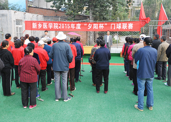 10月20日上午,学校2015年“夕阳杯”门球友谊赛在第二附属医院新落成的人造草坪门球场举行。学校离退休职工工作处和承办单位第二附属医院负责同志出席了开闭幕式。来自学校及第一附属医院、第二附属医院的6个代表队共50多名队员参加了比赛。经过紧张友好的角逐,学校二队获得冠军。