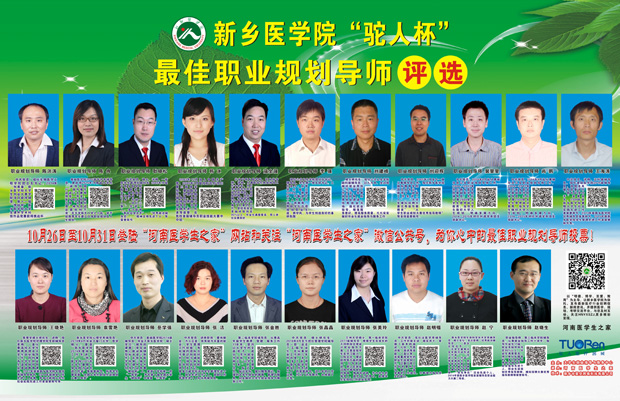 本网讯(文/王琰)为加强对大学生就业工作的认识,提升全校师生员工对大学生就业工作的热情,推动学校就业工作全程化、全员化深入开展,帮助全体学生树立职业观念,促进学生顺利就业,新乡医学院“驼人杯”最佳职业规划导师评选活动于10月26~31日在“河南医学生之家”微信公众号及网站上同时进行。