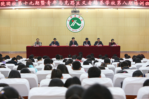 在庄严的中国共青团团歌声中,团校培训班正式开班。党委学生工作部(处)负责人宣读了《新乡医学院团校第十九期暨青年马克思主义者培养学校第八期培训方案》。