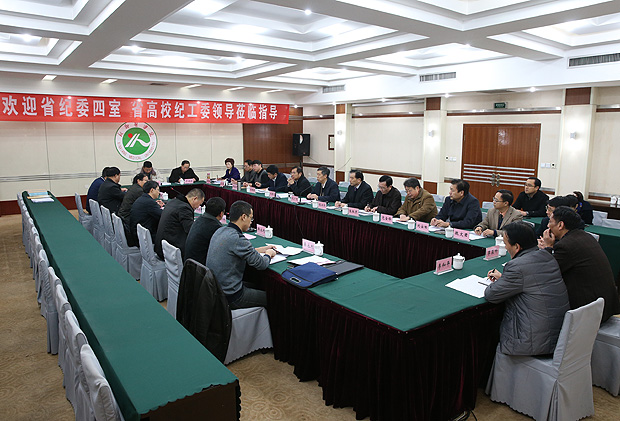本网讯(文/姚冰洋 郜佩 图/丁毅民)12月1日上午,省纪委第四纪检监察室、省高校纪工委等一行来我校就党风廉政建设工作、“两个责任”落实及纪委推进“三转”等情况进行调研座谈。座谈会由省高校纪工委副书记、省纪委驻省教育厅纪检组副组长王瑜主持。学校党委书记段广才、党委副书记陈兴华、副院长刘东亮、张红彦及相关职能部门负责人参加了调研座谈会。