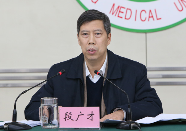 段广才要求,各位基层党组织和党组织书记必须进一步强化责任意识,把党建工作牢牢记在心上、扛在肩上、抓在手上,明确目标,突出重点,加强领导,狠抓落实,推动我校基层党建工作再上新台阶。一是要强化固本强基思想,不折不扣落实党建责任。对照习近平总书记 “治党三问”和郭庚茂书记的三点要求,牢固树立“抓好党建是本职、抓不好党建是失职、不抓党建是渎职”的责任意识,以高度的政治自觉切实履行“第一责任人”职责;牢固树立“围绕发展抓党建、抓好党建促发展”的理念,一心一意谋发展、聚精会神抓党建,以“最大政绩”引领、促进、保障其他政绩。二是要驰而不息抓好作风建设。以踏石留印、抓铁有痕的魄力,狠刹“四风”、改进作风,强化服务意识,认真解决党员干部作风中“不严不实”的突出问题;要自觉做党性党风的示范者和引领者,率先垂范,努力提高党组织的战斗力和凝聚力,以党建工作的优异成绩推动学校各项事业不断进步。三是要坚持与时俱进,持续发力推动党建工种创新。要围绕学科建设、人才培养、科学研究、团队建设等,创新党员教育管理方法,丰富活动载体,以建设学习型、服务型、创新型基层党组织为目标,以实施党建创新项目为抓手,充分发挥党支部的战斗堡垒作用和党员的先锋模范作用,增强全体党员推动学校改革、发展、稳定的责任感、使命感,为建设教学研究型医科大学作出更大贡献。