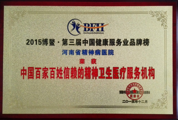 二附院荣获“中国百家百姓信赖的精神卫生医疗服务机构”称号