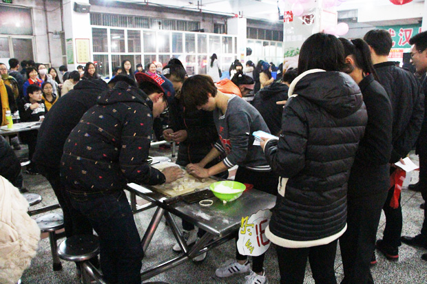 活动伊始,嘉宾们兴致盎然,在三分钟包饺子比赛环节与同学们真情互动,揉面、擀皮、包饺子,食堂瞬间变成了包饺子的“战场”,大家神情专注,动作娴熟,在忙碌中享受这难得的欢乐时光。