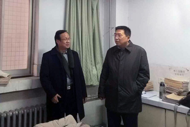 别校长一行在基础医学院党政负责人的陪同下,先后深入到教师办公室、实验准备室、学生实验室等场所进行了实地走访和检查,亲身体验室内温度,和在场师生亲切交谈,耐心了解室温状况。随后,组织召开现场会,他要求基础医学院及时安排专人负责排查实验楼的供暖情况,并将排查结果上报后勤管理处。同时要求后勤管理处限期进行维修,切实保障广大师生的取暖需求,给师生创造一个舒适的工作和学习环境。