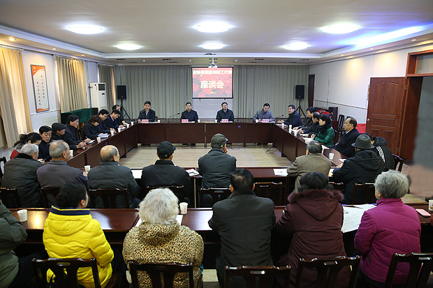 本网讯(文/郜佩图/丁毅民)1月19日上午,学校在离退休职工活动中心会议室召开2016年离退休职工代表迎新春座谈会。校领导段广才、别荣海、刘荣增、张红彦出席座谈会。党委办公室、党委组织部、校长办公室、人事处、后勤管理处等部门负责人和离退休职工代表30余人参加了座谈会。