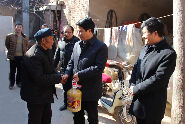 随后,刘荣增一行冒着严寒分别前往延津县石婆固镇胡村和原阳县官厂乡柳园村看望我校省派第一书记和2位驻村扶贫干部,实地察看了解第一书记和驻村扶贫干部们的工作和生活情况,向两村共28户贫困户送上了春节慰问品,并代表学校党委向他们致以节日的问候和美好的祝福。每到一处,刘荣增都详细询问驻村工作开展情况和驻村扶贫干部的生活情况。他强调要引导村民立足实际,因地制宜,加快推进扶贫项目的进展,建立扶贫开发的长效工作机制。他表示,学校会做好驻村同志的坚强后盾,给予各方面的帮扶。