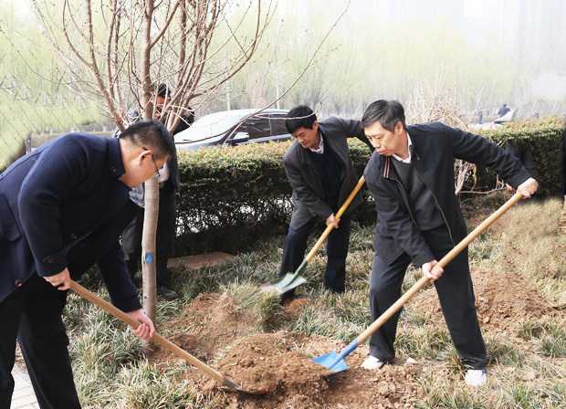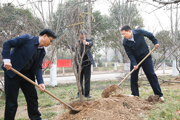 本网讯(文/胥丰 图/丁毅民)春回大地万物复苏,植树添绿正当时。为绿化美化校园,3月18日上午,我校组织一年一度的教职员工植树活动。校领导段广才、别荣海、陈兴华、刘东亮、张红彦、张新中与学校行政职能部门百余职工一起,参加植树活动,用实际行动建设绿色校园。