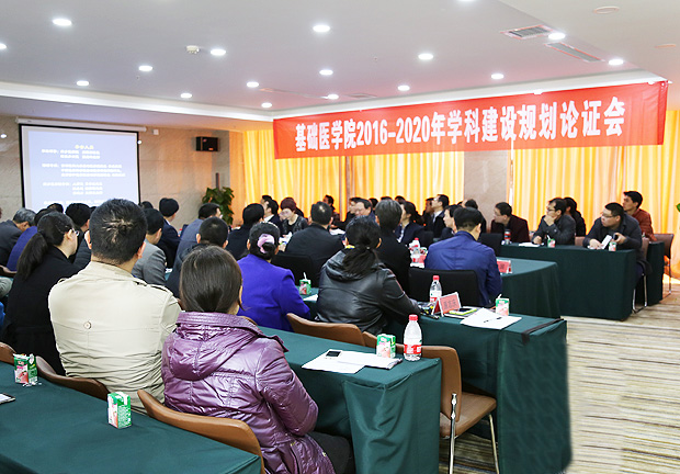 论证会上,基础医学院负责人从学科规划的背景、目前的现状、建设目标、总体思路、重点改革、保障措施和存在的问题等方面向专家组进行了详细汇报。重点从学科现状、各机构单元的学科定位、发展目标和措施等方面对基础医学院的各个学科进行了全方位、多角度的剖析;对基础医学院师资队伍、科学研究、平台建设、本科和研究生教育教学等方面进行规划展望,并提出要在3~5年的时间里,使基础医学院各学科的整体综合指标接近省内重点大学,且在多项个别指标上要有所超越。