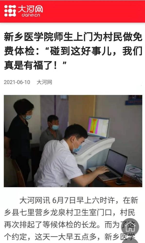 近日,我校公共卫生学院85名师生到新乡县朗公庙乡,七里营乡龙泉村、七四村等开展健康调研并为村民做免费体检,预计两个月完成1.1万例18至80岁的调研指标。这次活动是我校开展党史学习教育“我为群众办实事”实践活动的一个部分,围绕增进人民群众健康开展活动,以实实在在的服务增强群众健康方面的获得感、安全感,助力乡村振兴和美丽幸福乡村建设。