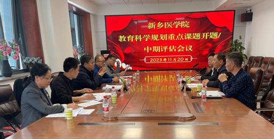 根据河南省教育科学规划与评估院关于《河南省教育科学规划重大课题、重点课题管理细则》的通知要求(2023年10月30日),进一步加强河南省教育科学规划重点课题管理,促进教育科学研究事业繁荣发展,更好地发挥教育科学研究对教育改革与发展的积极促进作用,河南省高等医学教育发展研究中心于2023年11月20日下午3:30在我校图书信息楼508会议室举行新乡医学院2024年教育科学规划重点课题开题、2023年教育科学规划重点课题中期评估会。此次评估会议邀请河南省教育学会秘书长、河南省教育科学规划与评估院李新副院长、河南省教育科学规划与评估院教育科学规划办公室主任韩和明教授、河南师范大学人力资源部副部长/教师中心副主任张利远教授、新乡医学院卫生健康管理学院党委书记崔金奇教授、新乡医学院护理学院张金华教授5位同志担任评审专家。我校林俊堂副校长出席本次评估会并发表致辞,首先对与会专家学者的到来表示热烈欢迎,并对参与本次评估会的重点课题项目组成员在教育科学规划研究领域所做的努力表示赞赏。他指出,教育科学规划重点课题的研究工作对于我校学科发展、学生培育以及教学质量的提升等方面都具有重要意义,希望与会教师能够充分发挥专业优势、加强交流合作,共同推动教育科学研究工作取得更大的成果,在学生培育方面更进一步!本次评估会议由我校高等医学教育发展研究中心主任徐刚珍主持。