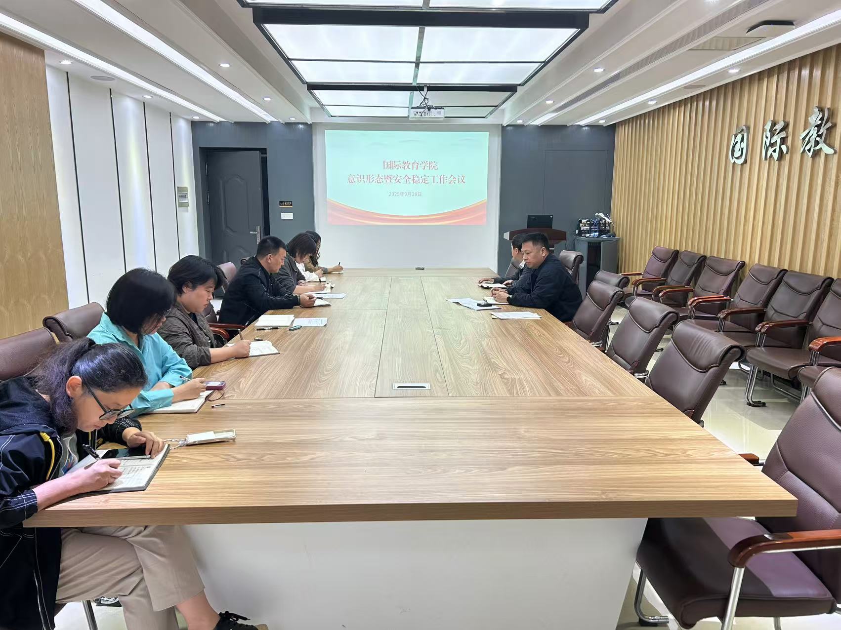 2025年中秋、国庆将至,为切实做好“双节”假期间意识形态和安全稳定工作。9月28日上午,学院召开意识形态暨安全稳定工作会议,学院领导班子、各科室负责人参加会议,会议由学院直属党支部书记、院长袁磊主持。