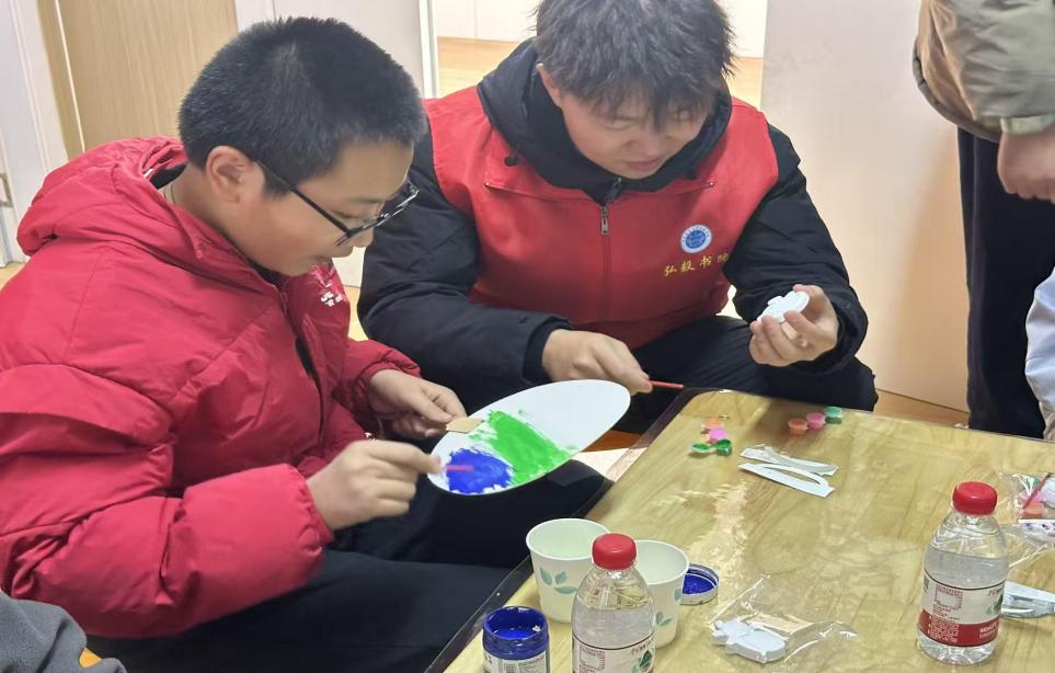 活动在充满奇思妙想的石膏娃娃创意涂鸦中拉开帷幕。志愿者们为孩子们分发了纯白色石膏娃娃和五彩颜料,引导他们自由创作。画笔挥舞间,卡通人物穿上了新衣,小动物焕发了神采。每一个大胆的色彩搭配、天马行空的造型,都是孩子们内在生命力的迸发与独特个性的写照。对于弘毅学子而言,这不仅是激发想象力的陪伴,更是一次直观感受生命多样性、尊重个体差异的生命教育实践——每一个独特而不完美的娃娃背后,都是一个同样值得被珍视和用心对待的生命。