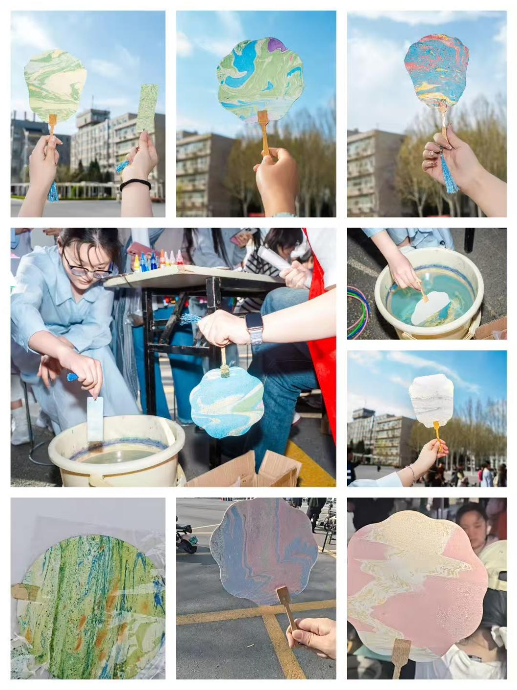 薪火清明·漆绘初心寄烈士环节作为压轴互动项目,备受同学们青睐,大家以扇为纸、以漆为墨,精心绘制带有红色元素、清明意象的图案,将对先烈的追思、对初心的坚守绘于扇面,一把把独具匠心的漆扇,既是创意作品,更是传承红色精神的青春载体。