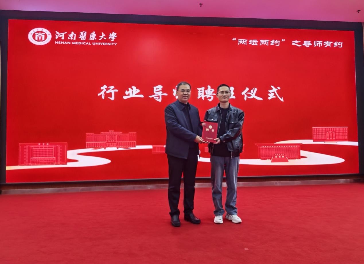 讲座伊始,林俊堂发表致辞。他首先对师振鹏校友荣归母校表示欢迎,对其长期以来给予母校工作的关心与支持致以诚挚感谢;勉励全体同学树立远大理想,以敢为人先的创造热情和勇攀高峰的超越意识,锤炼专业本领、勇担时代使命,努力成长为德才兼备的优秀人才,为我国医药卫生事业的高质量发展贡献青春智慧与力量。随后,林俊堂为师振鹏颁发行业导师聘书。