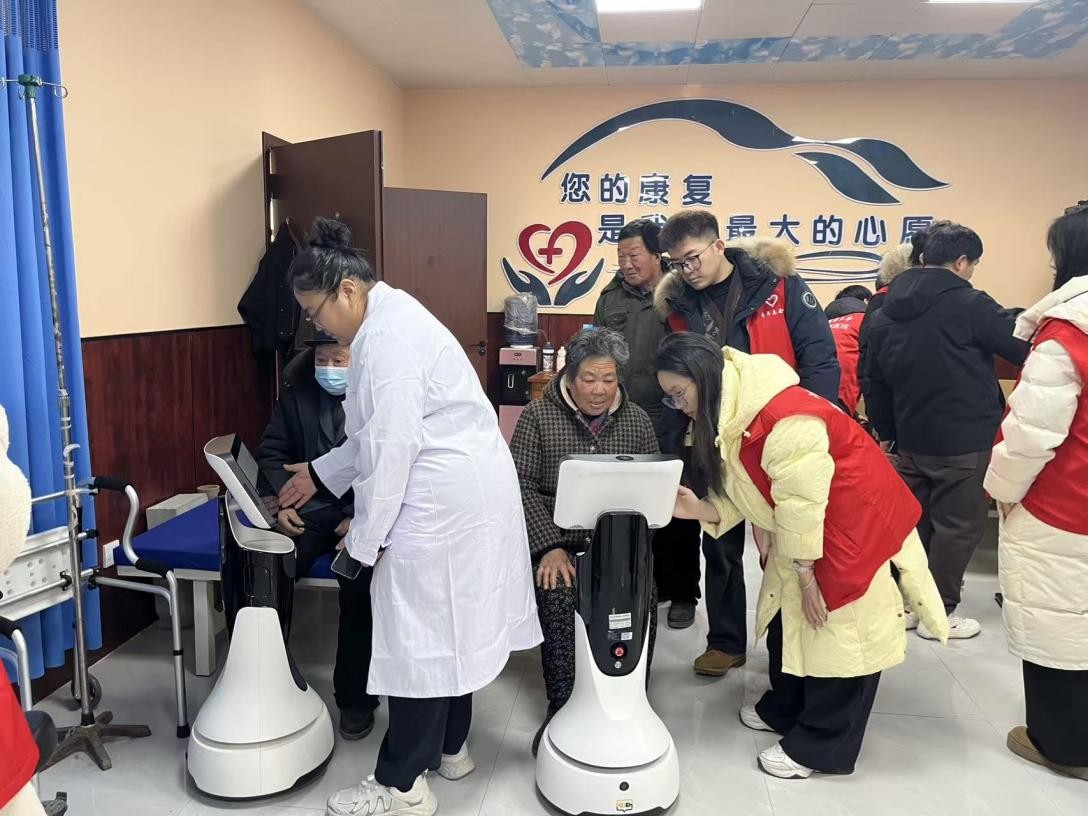 随后,服务团队转赴官厂镇卫生院开展专业帮扶。第二附属医院多科室的专家深入病房进行联合查房,并对复杂病例提供诊疗指导。专家们还就最新国际急救指南对基层医护人员进行了系统培训。与此同时,智能机器人继续“服役”,为其他患者及医护提供高效的心理咨询与压力疏导,展现了“人机协同”基层服务新模式的实用价值。
