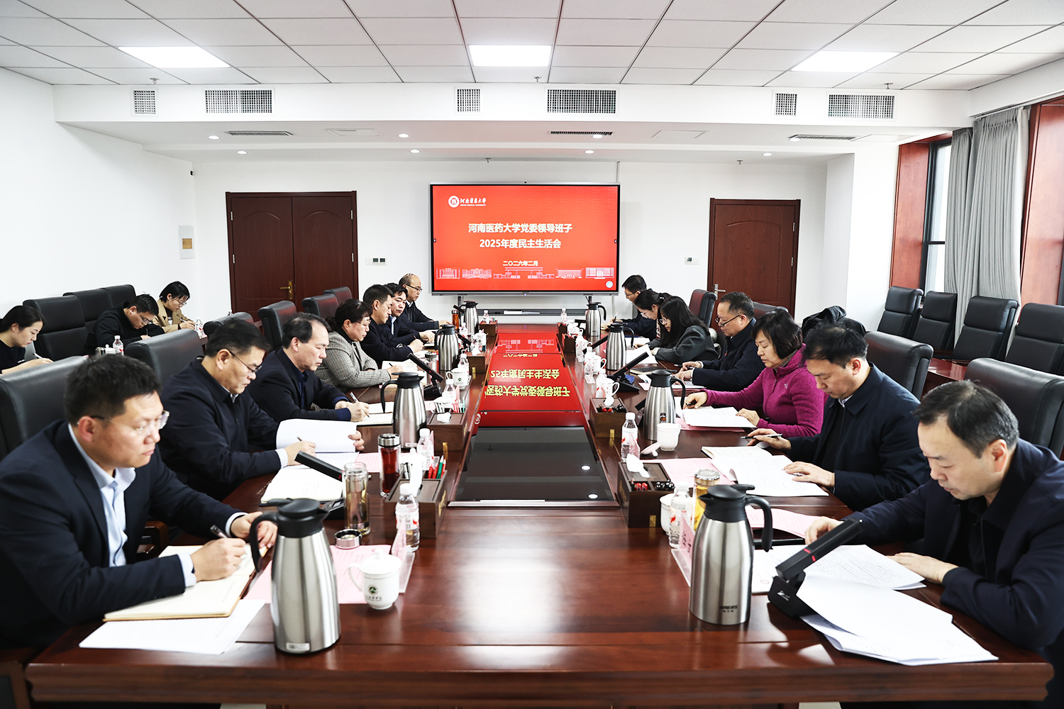 2月13日下午,我校党委领导班子召开2025年度民主生活会。会议紧扣“深入学习贯彻习近平新时代中国特色社会主义思想,全面贯彻落实党的二十届四中全会精神,以打好攻坚战、持久战的决心和恒心,锲而不舍落实中央八项规定精神,推进作风建设常态化长效化,以优良作风凝心聚力、真抓实干,奋力开创中国式现代化建设新局面”的主题。省委第六督导组组长、省委组织部二级巡视员马丰收到会指导并作点评。省纪委监委第七监督检查室派员列席。校党委书记任文杰主持会议并作总结讲话,全体校党委常委参加会议。相关职能部门负责人列席会议。