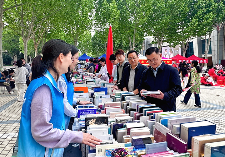 南校区五环广场举办的“新书进校园”图书展阅会汇集了医学、文学、社科、自然科学等多个领域的精品新书,为师生提供了现场阅览、荐购及购买的一站式服务。活动当天,姬广军来到展阅会现场,与师生们亲切交谈,一同翻阅新书、交流心得,在书香中感受阅读的魅力。他勉励师生要养成良好的阅读习惯,让书香浸润心灵,让阅读伴随成长,不断从书籍中汲取智慧和营养,形成爱读书、读好书、善读书的浓厚氛围,共建书香校园。