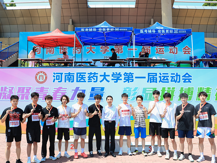 4月24日下午,河南医药大学第一届运动会顺利完成各项赛事。校长朱武凌在运动会期间到赛场看望师生并为获奖选手颁奖。闭幕式在南校区体育场举行,校党委常委、副校长、第一届运动会组委会主任委员于毅和运动会组委会办公室成员出席,并为获奖单位代表颁奖。闭幕式由党政办公室负责人主持。