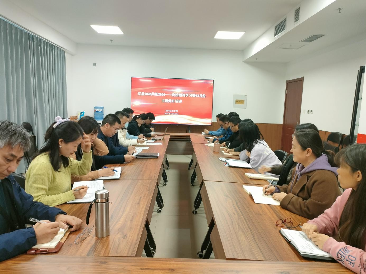 为全面回顾和总结2025工作开展情况,分析发现工作中存在的问题和不足,谋划2026年党建工作任务有效开展及落实举措,以高质量党建引领部门高质量发展和高效能治理。12月23日,期刊社党支部组织开展“复盘2025共见2026”主题党日活动,支部书记徐自超主持会议,全体教职工参加。