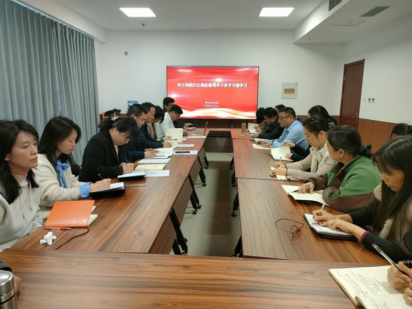 为深入学习贯彻习近平总书记关于树立和践行正确政绩观学习教育的重要讲话和重要指示精神,以高度自觉开展好学习教育,3月26日下午,期刊社党支部在党建活动中心召开专题学习会议,支部书记徐自超主持会议,全体教职工参加。