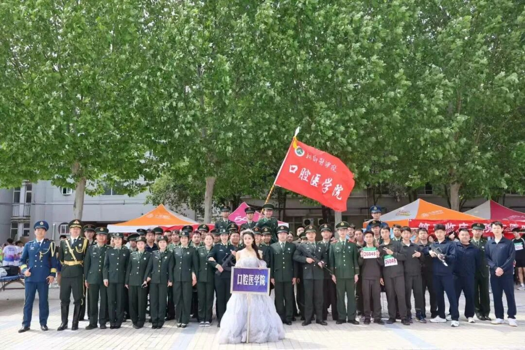 看,昂首阔步向我们走来的是口腔医学院代表队。这是一支退伍大学生组成的方队,他们以热血铸就忠诚,以担当书写青春。他们,是永不褪色的忠诚卫士,是精益求精的医学追梦人,是心怀大爱的健康使者。军旅生涯锻造了他们钢铁般的意志,医学之路培育着他们仁心济世的情怀。