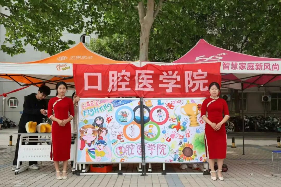 前方是激动人心的比赛,后方也有后勤人员为运动员们保驾护航。我院学生会文体部在五环广场设有后勤服务台,提供矿泉水、纸巾等贴心物品,并设立失物招领处。志愿者们以热情服务赢得广泛好评,彰显了口腔医学院团结协作、精益求精的精神风貌。