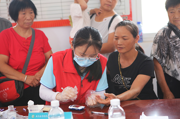 义诊现场,来自我校第一、二、三附属医院儿科、心血管、神经内科、呼吸内科、眼科等14个科室的数十位专家及工作人员组成的医疗卫生志愿服务团,为数百名村民开展义诊等医疗卫生服务。专家们为患者看诊、解疑答惑,个个忙得满头大汗;根据患者的身体状况,详细询问了患者病史,认真为患者进行检查,并针对性地提出科学的治疗方案;同时,重点就慢病的护理、治疗、用药和饮食习惯等向村民进行宣传普及,叮嘱他们做到早发现、早预防、早治疗,养成健康的生活习惯。整个义诊活动有条不紊,充分发挥我校优质医疗卫生资源优势,以实际行动践行“为群众办实事、为人民谋幸福”。