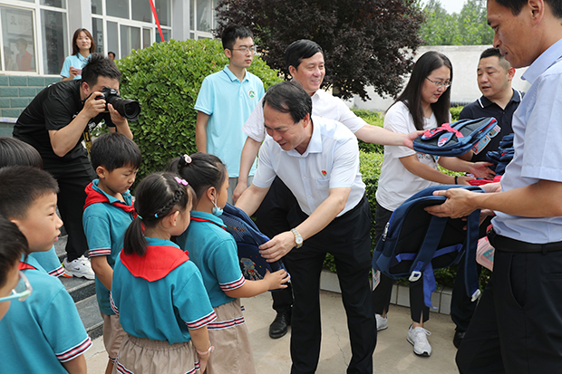雒保军在村委会大院为小洛纣村中心小学学生代表送上文体用品;在义诊现场为师生志愿者送上慰问品。雒保军一行在会议室进行简短交流;到第二附属医院前身即平原军区后方医院三分院旧址参观调研。