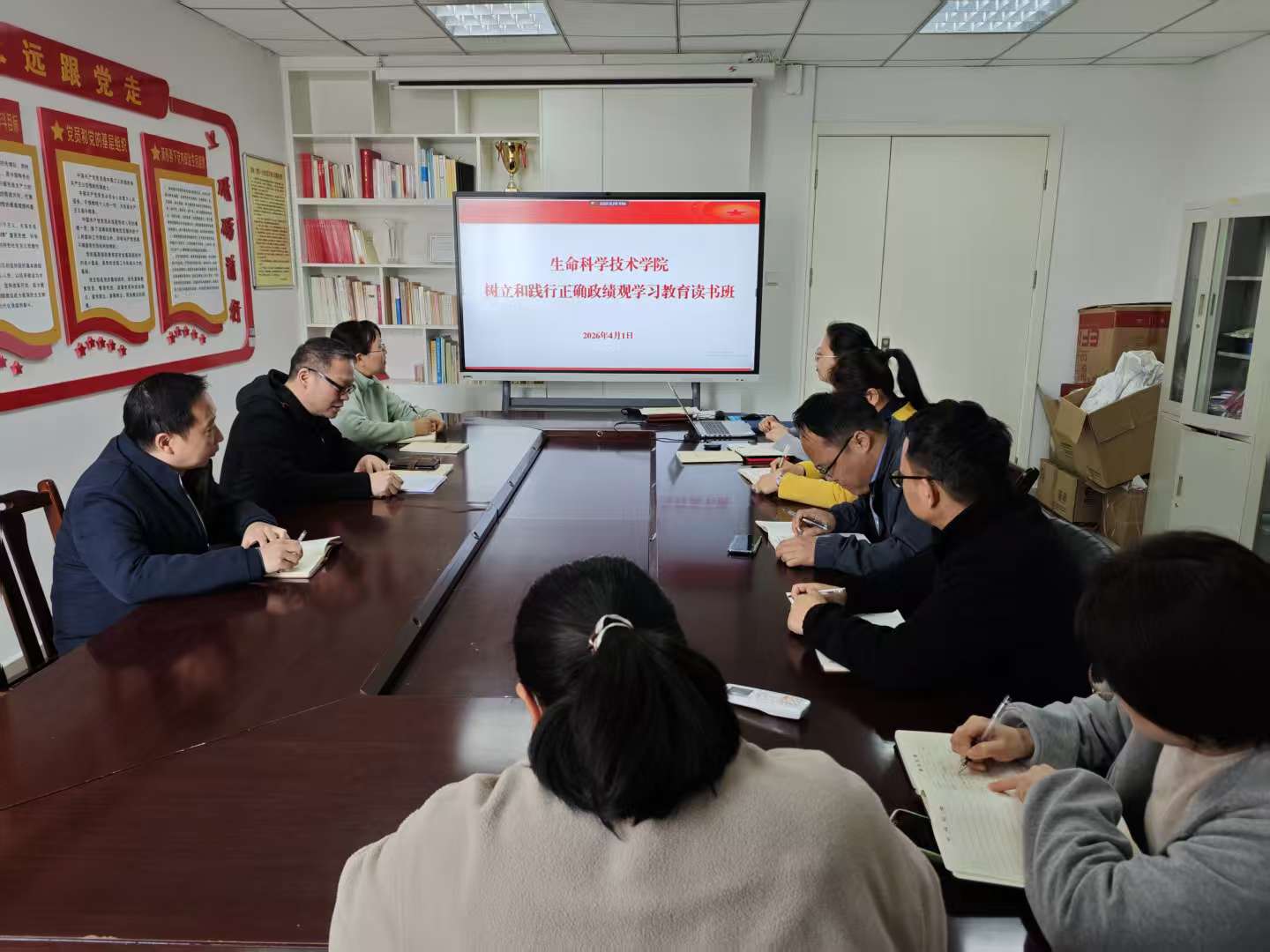 为深入学习贯彻习近平总书记关于树立和践行正确政绩观的重要论述,落实中央、省委及学校相关工作部署,4月1日至2日,生命科学技术学院党委在科技楼511会议室举办树立和践行正确政绩观学习教育读书班。学院全体班子成员、党支部书记参加学习。读书班采取书记领学、警示教育、集中自学、交流研讨相结合的方式开展。