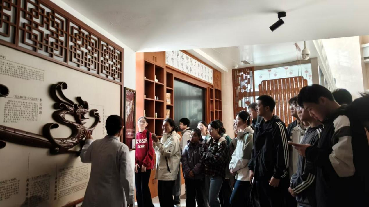 随后,师生一行走进中药文化馆。丰富的道地药材标本,特别是河南四大怀药及太行山、伏牛山药材,生动展现了中医药的地域特色。林飞老师的讲解进一步深化了同学们对中医药文化内涵的理解,坚定了大家传承创新中医药、服务健康中原的信心。