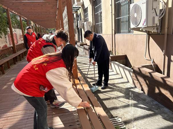 此次活动中,书院全体党政领导按照“峻极书院‘五+五’全育护航体系”,以辅导员导师身份亲自带队,为同学们树立了良好的榜样。活动开始前,带队老师与同学们按照分工进行了详细的讨论和安排,随后,大家齐心协力对文化长廊进行了全面而细致的清洁工作,并对长廊内的设施进行了维护和保养。
