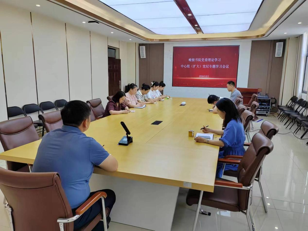 为深入学习贯彻修订后的《中国共产党纪律处分条例》,根据学校党纪学习教育工作计划安排,我院党委理论学习中心组于6月27日上午在书院会议室召开学习会议,专题学习党的工作纪律和生活纪律,书院全体职工参加学习会议。