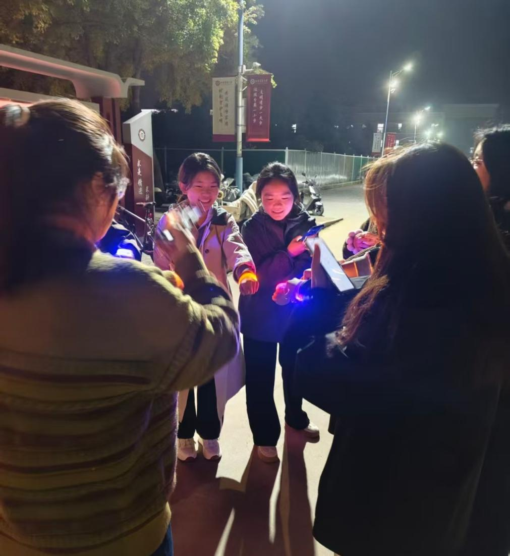 随着一声令下,游戏正式拉开序幕。“猫” 与 “老鼠” 阵营同步共享位置信息,“老鼠” 们率先出发,凭借对校园环境的熟悉灵活躲藏;“猫” 队则紧随其后,结合实时位置信息展开智慧搜寻与紧张捕捉。六十分钟的限时角逐中,校园里随处可见同学们奔跑的身影、默契的配合与欢快的笑声。活动结束后,全体玩家准时返回集合点,以高德地图行程截图作为最终判定依据,公平公正地完成活动收尾。