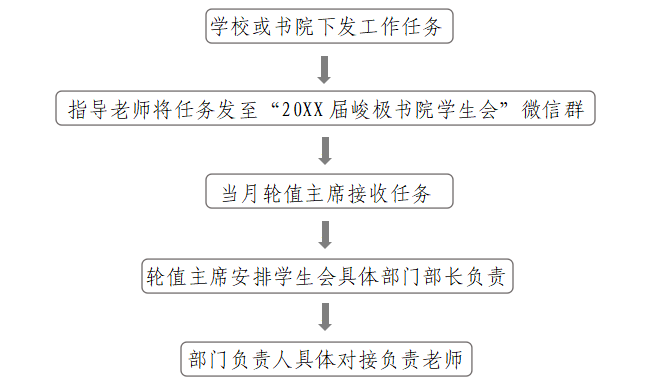 3. 轮值主席必须负起责任,按照老师要求合理安排工作,高度配合各位老师完成各项任务。