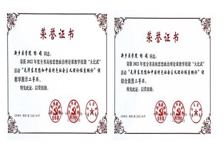 8月12日,康瑞林、张萍、杨娟、李文强、杜昌建、贾臻等六位教师在教育厅举办的2022年度全省高校思政课教学技能“大比武”活动中斩获多项荣誉。