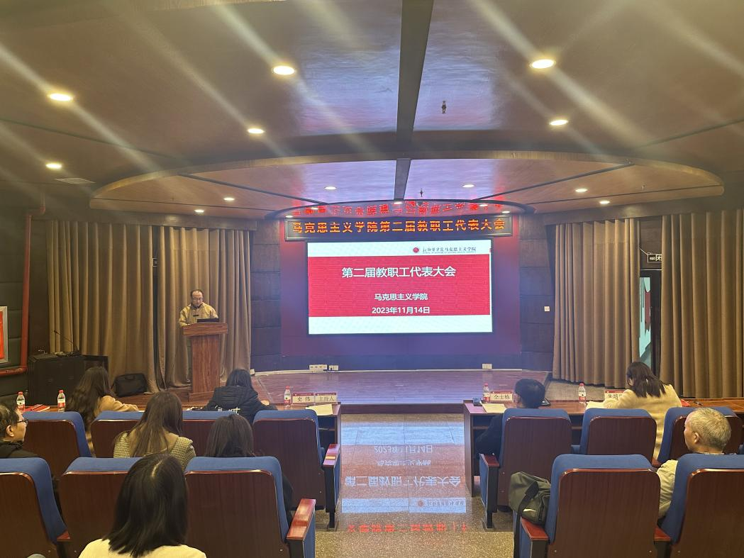 11月14日,我院在南校区校史馆第三报告厅召开第二届教职工代表大会,总支书记仝士栋、工会主席(总支副书记)史伟、副院长朱培丽、副院长刘红及全体教职工参加会议。会议由史伟主持。
