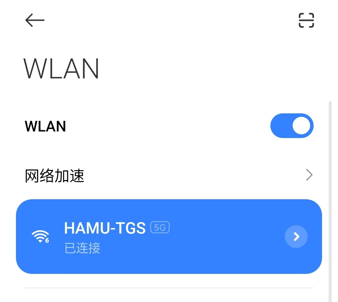 步骤1:打开设备WiFi开关,搜索并连接无线信号“HAMU-TGS”;