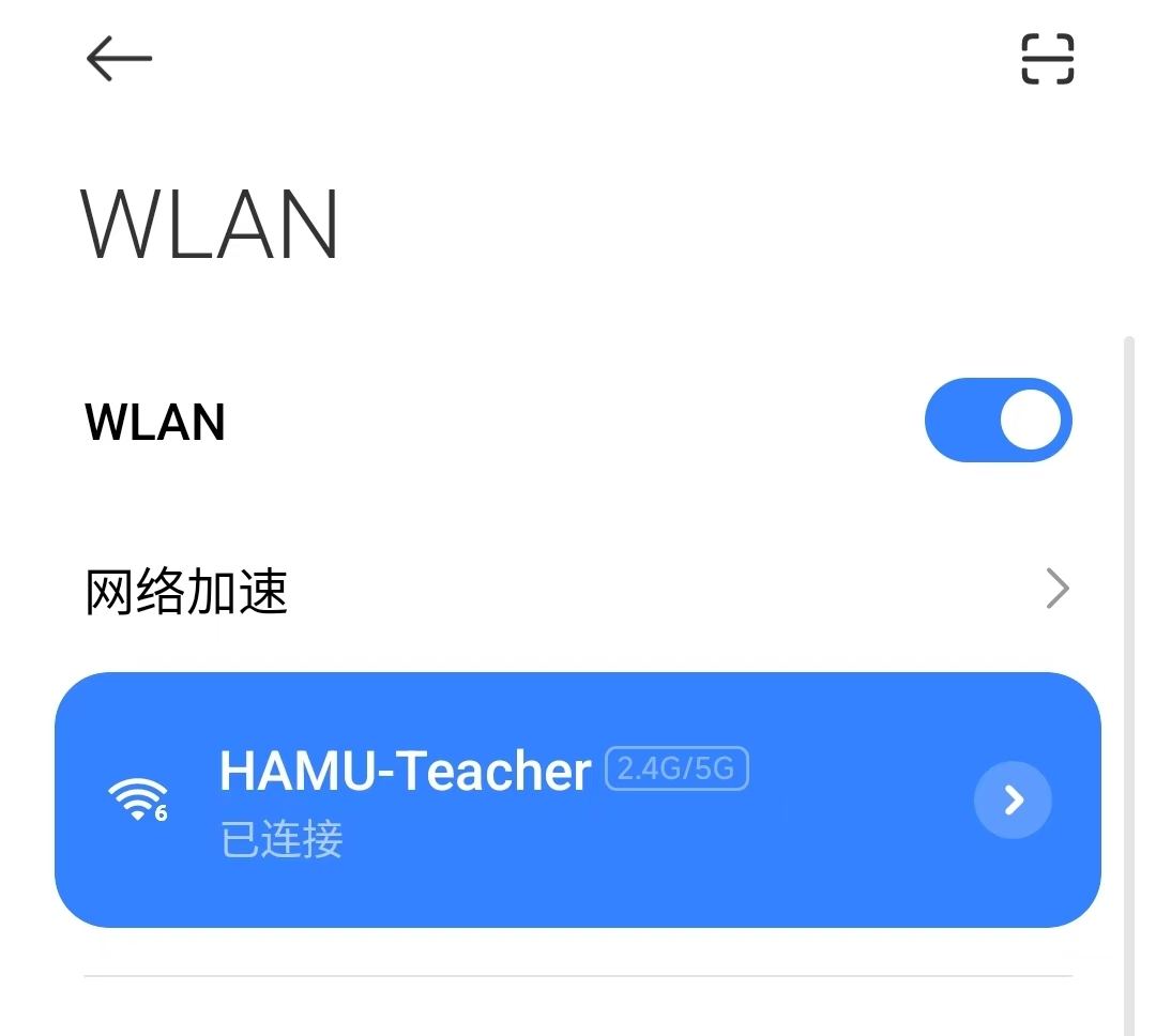 步骤1:打开设备WiFi开关,搜索并连接无线信号“HAMU-Teacher”;