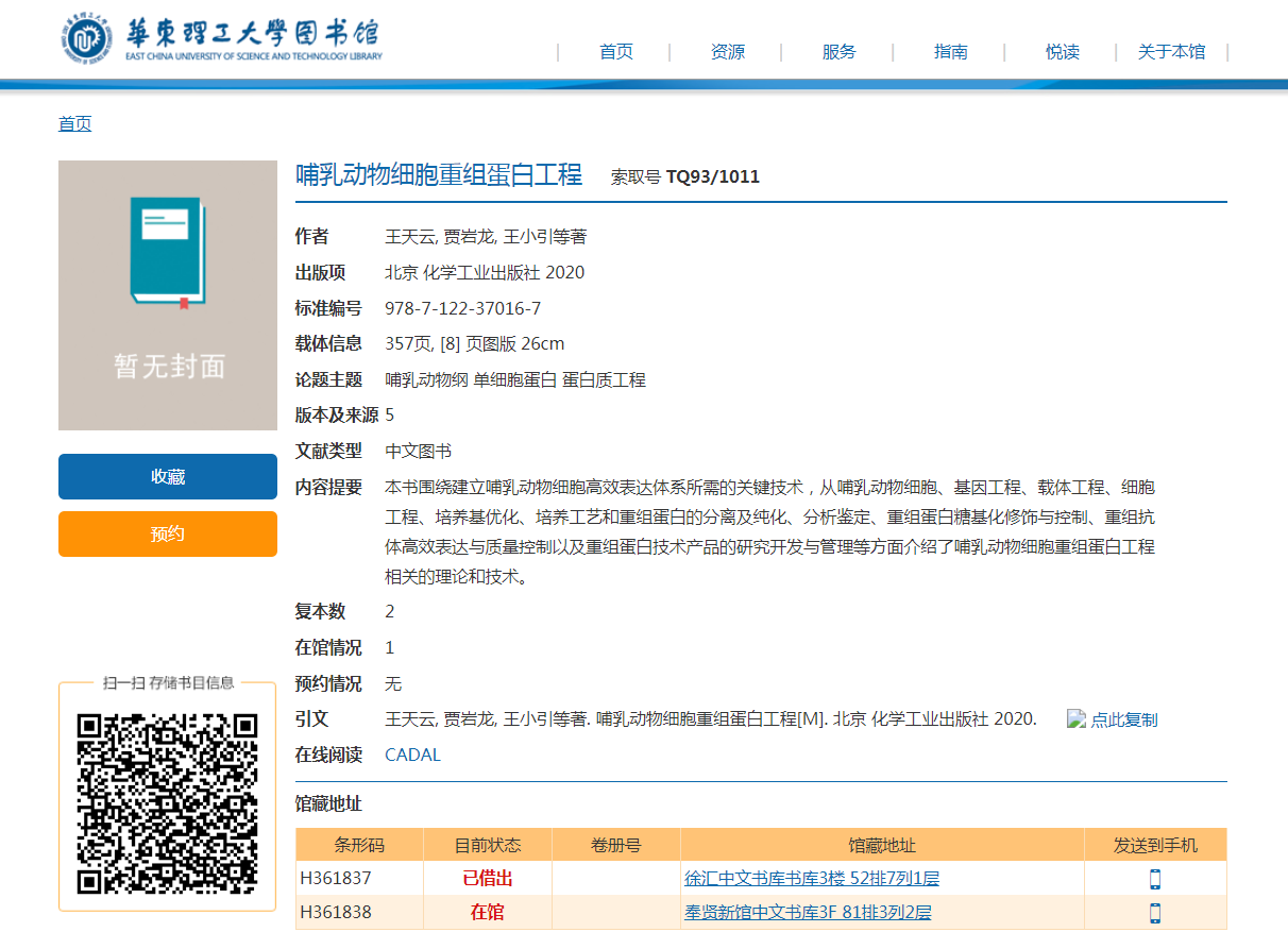 我实验室王天云教授等编写的专著《哺乳动物细胞重组蛋白工程》入驻华东理工大学图书馆,该专著于2020年由北京化学工业出版社出版。本书围绕建立哺乳动物细胞高效表达体系所需的关键技术,从哺乳动物细胞、基因工程、载体工程、细胞工程、培养基优化、培养工艺和重组蛋白的分离及纯化、分析鉴定、重组蛋白糖基化修饰与控制、重组抗体高效表达与质量控制以及重组蛋白技术产品的研究开发与管理等方面介绍了哺乳动物细胞重组蛋白工程相关的理论和技术。