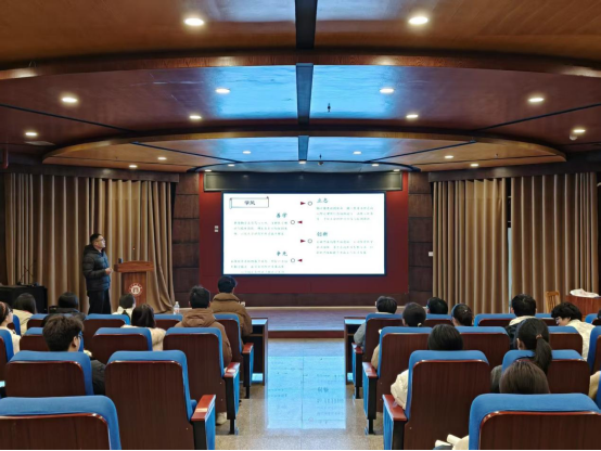 本网讯(杨萌/文 杨子轩/图)为弘扬新时代我校精神及优良学风、教风和校风等核心文化理念,11月28日晚,我院在第三教学楼报告厅举办“文化理念润心田”主题宣讲活动。活动由辅导员袁永庆主持,我院师生积极参与。