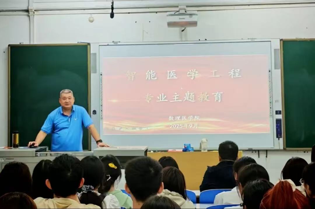 于勉围绕专业培养目标,系统解析了医、理、工多学科交叉融合的专业特色与发展路径。他在表达对学子殷切期望的同时,客观分析了专业学习中可能面临的挑战,鼓励同学们积极应对、夯实基础、提升综合能力,并提及学院配备优质师资与教学资源,希望大家珍惜条件、勤勉学习,力争在智能医学领域学有所成。
