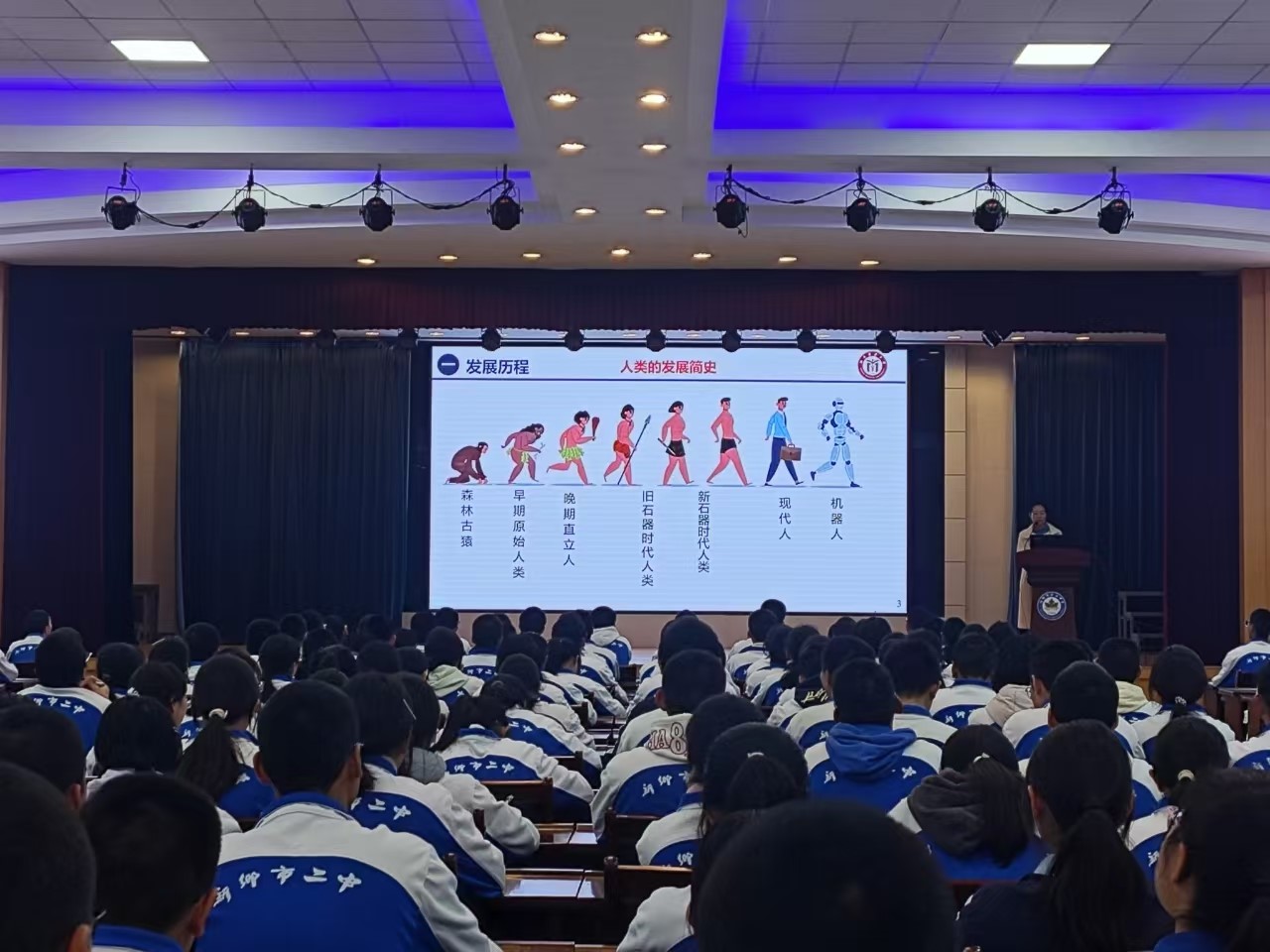 讲座在同学们热烈的掌声中拉开帷幕。新乡二中教师发展中心主任李雅玮首先对我院教师的到来表示衷心感谢,并强调了在高中阶段接触前沿科学、拓宽视野的重要性。