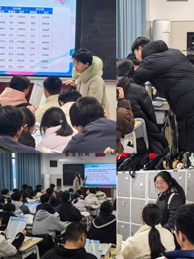 刘亚涵、秦蒙蒙、赵含瑞三位成员则化身“青春护航员”,在宣讲现场各司其职、默契配合。他们有序分发资料、维持秩序,在互动环节主动走到学弟学妹中间,用轻松的语气解答着关于专业学习、培养模式、志愿填报的种种困惑。“专业课难不难?”“未来能做什么工作?”“备考有什么小技巧?”面对这些熟悉的问题,他们结合自身经验给出真诚建议,让紧张的备考氛围多了一份从容与笃定。带队指导教师李慧君也与中学师生深入交流,详细介绍学院的人才培养特色与招生政策,鼓励大家坚定理想、勇敢追梦。