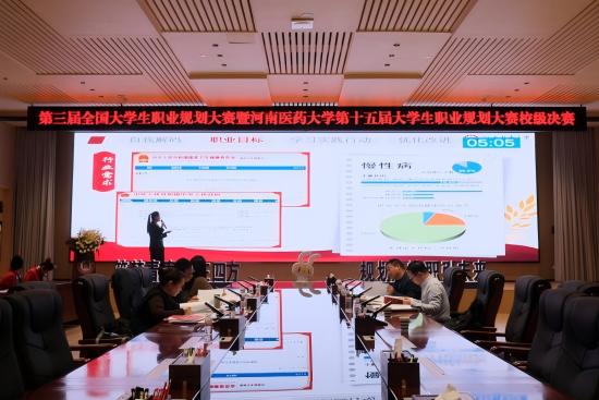 12月30日,第三届全国大学生职业规划大赛暨河南医药大学第十五届大学生职业规划大赛校级决赛圆满落幕。来自各学院19名优秀选手入围决赛,同台竞技,围绕个人职业理想、成长规划展开精彩展示,现场比拼激烈、亮点纷呈。经过专业评审团的严格考评,我院2022级预防医学专业王若菡同学荣获本科生成长赛道一等奖,我院荣获优秀组织奖。