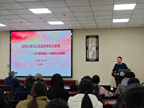 为全面深入学习领会党的二十届四中全会精神,深化教育综合改革,扎实推进学校宣传贯彻工作,引导全院师生把思想和行动统一到全会精神上来,12月23日下午,我院在学术报告厅隆重召开党的二十届四中全会精神专题宣讲会。学校理论宣讲团专家、马克思主义学院康瑞林老师担任宣讲人,宣讲会由学院党委书记刘荣勋主持,党委理论学习中心组成员、全体教工党员以及学生代表参加会议,共同聆听学习、凝聚奋进力量。
