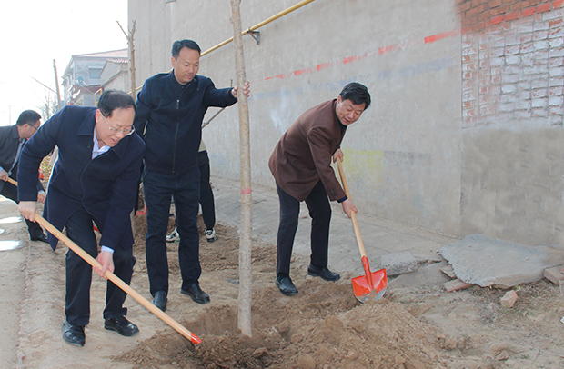 邵金远到任庄村义务植树点,为任庄村栽种下希望之树,并对我校大学生志愿者深入农村、挥洒汗水、献力美丽乡村的精神给予表扬。