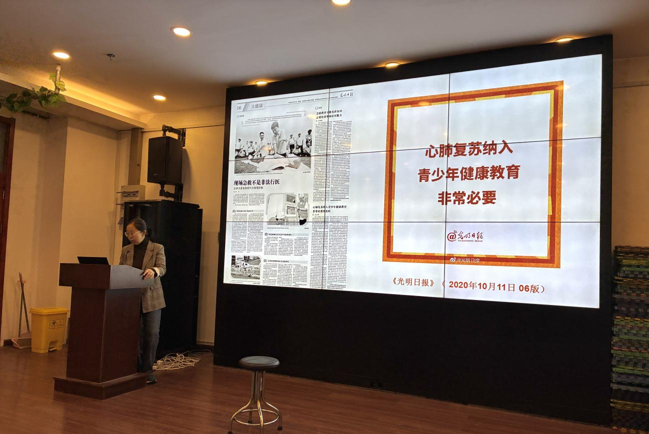 本次培训由河南医药大学第三附属医院的王丽娟老师主讲,内容涵盖紧急心肺复苏(Cardiopulmonary Resuscitation,简称CPR)、自动体外除颤仪(Automated External Defibrillator,简称AED)及海姆立克急救法(Heimlich maneuver)三项核心急救技能。王老师结合真实案例,详细讲解了各类急救措施的原理、操作步骤及注意事项,使师生们不仅掌握了基本急救知识,还对相关医学术语和表达方式有了更直观的理解和记忆。