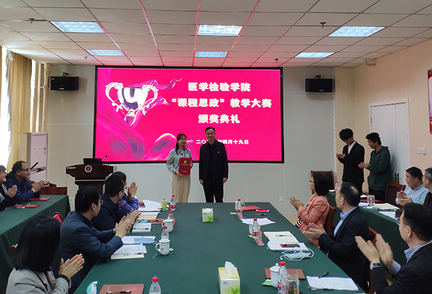 陈清江现场观摩了学院的课程思政大赛,并为获奖人员颁发证书。他强调,课程思政要保证政治性、科学性、规律性、创新性、时效性。他希望广大教师要认真落实习近平总书记关于课程思政的有关要求,坚持政治性和学理性相统一、价值性和知识性相统一、建设性和批判性相统一、理论性和实践性相统一、统一性和多样性相统一、主导性和主体性相统一、灌输性和启发性相统一、显性教育和隐性教育相统一,做到政治要强、情怀要深、思维要新、视野要广、自律要严、人格要正。他要求各位专业教师,要把医学专业知识和思政育人有机结合,做到全员、全过程、全课程融入。