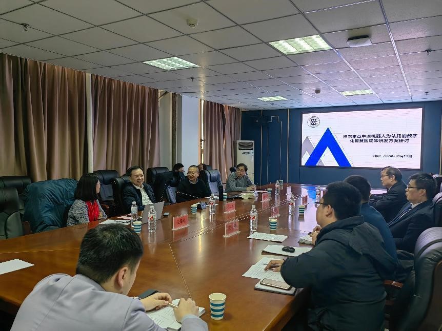 1月17日,我院在科技楼716召开智慧中医论坛暨神农本草中医机器人为依托的数字化智慧医联体研发方案研讨会,会议邀请天津中医药大学任海燕教授、天津大学周鹏教授进行学术交流,我院特聘教授刘清君担任主讲。校党委书记任文杰出席本次会议,我院党委书记王守英、副院长任武、组织员柴汝闯、项目组成员及研究生代表参加本次会议。